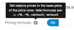 1. Pricing formulas allow for a Base Price to be set on the main level of the price matrix. Using pricing formulas the prices of the ticket types can automatically be calculated. Available formulas are: